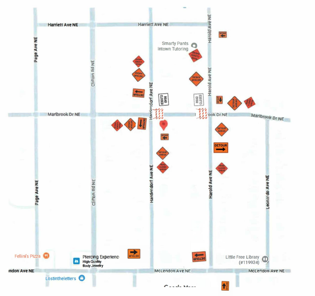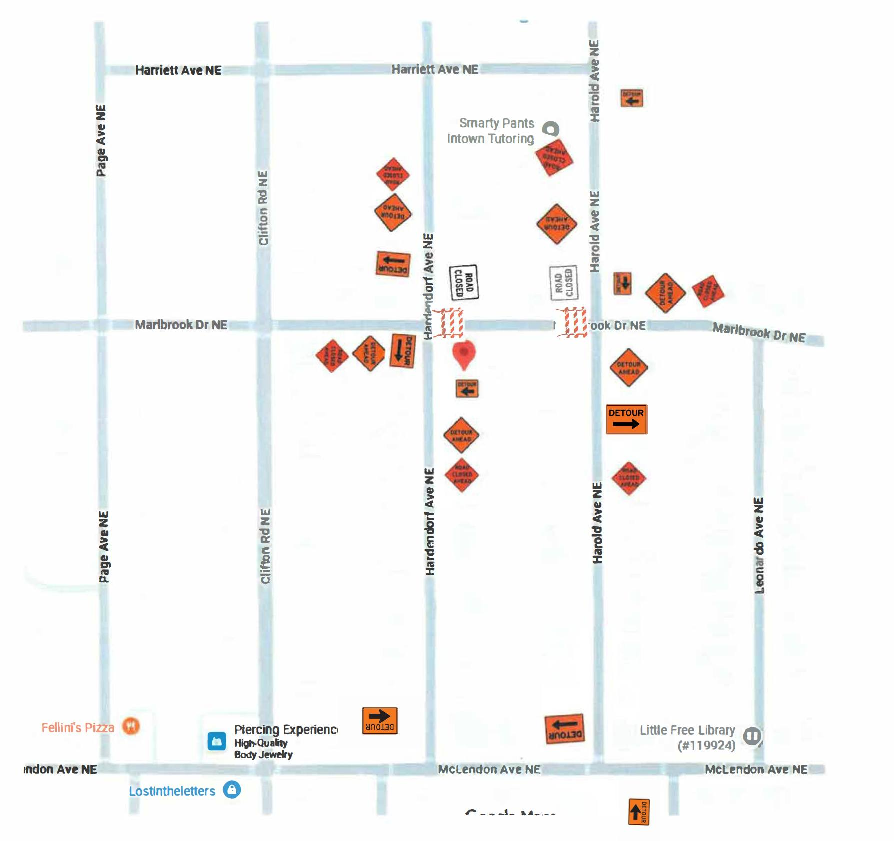 turn onto Marlbrook Dr. NE or McLendon Ave NE.